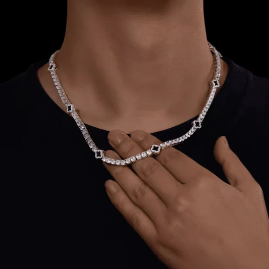 SAVE [אחוז]שרשרת טניס תלתן - זהב לבן