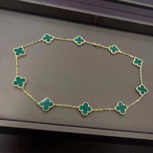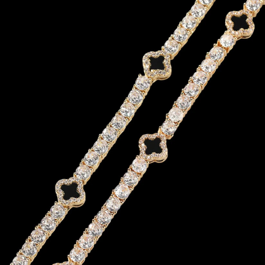 SAVE [אחוז]שרשרת טניס תלתן משובץ - זהב 18 קראט