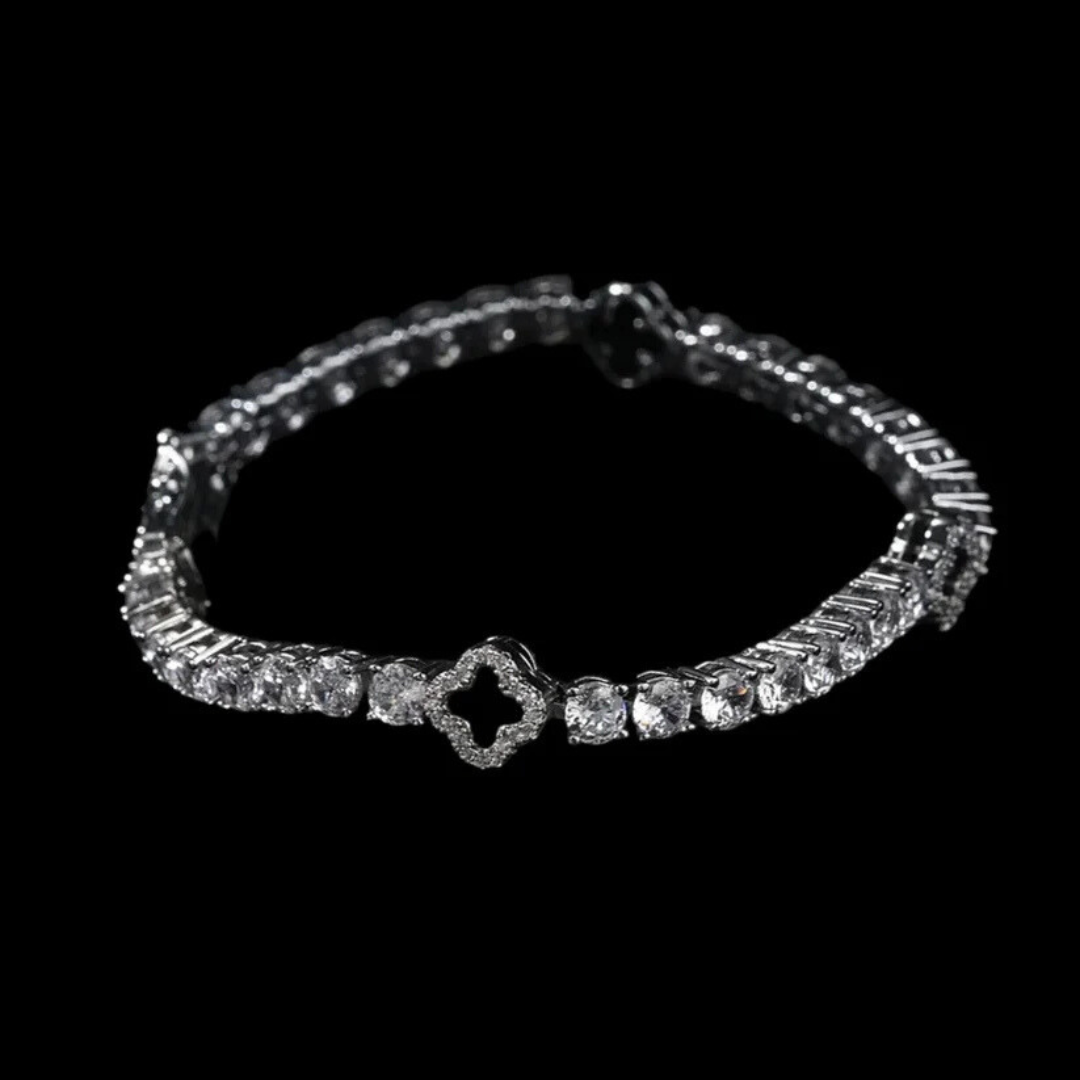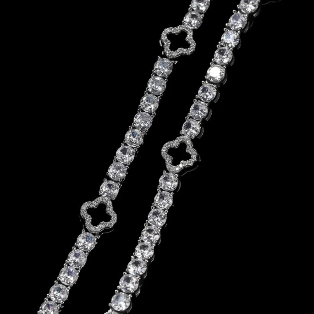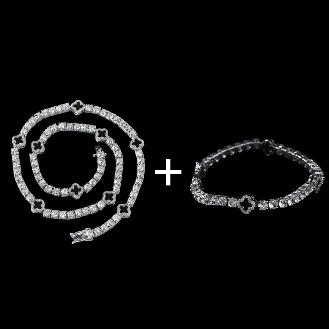 סט צמיד + שרשרת תלתן יוקרתי עם אבני זירקון נוצצים