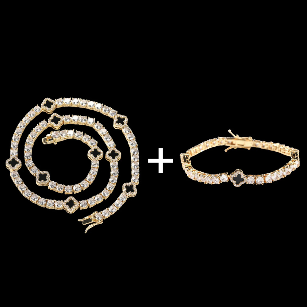 סט צמיד + שרשרת תלתן יוקרתי עם אבני זירקון נוצצים