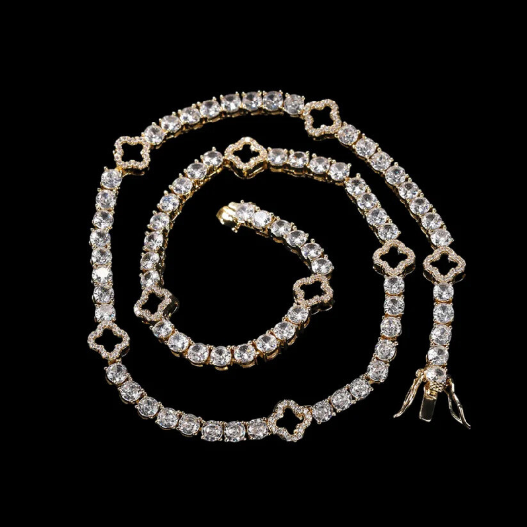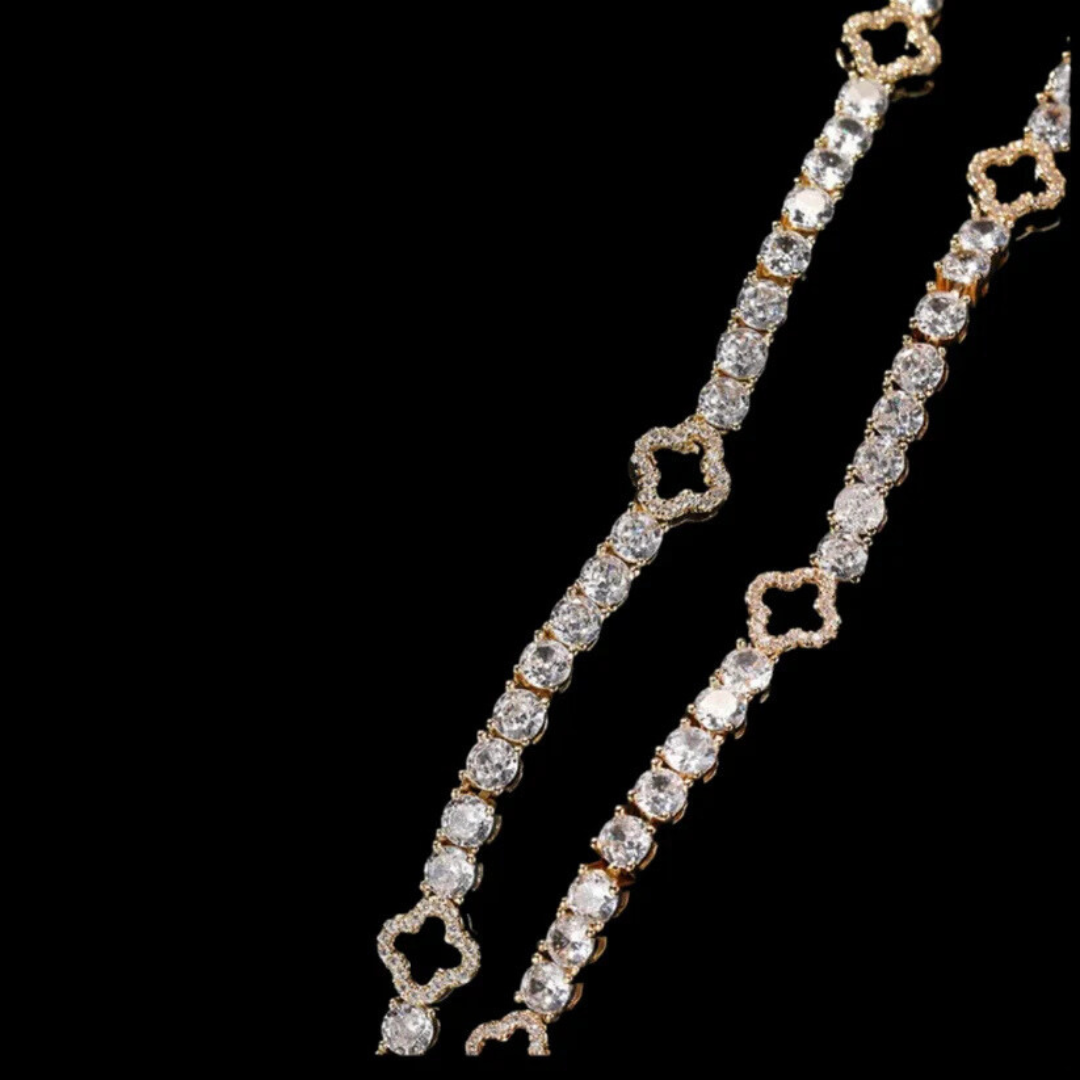שרשרת טניס תלתן יוקרתי עם אבני זירקון נוצצים