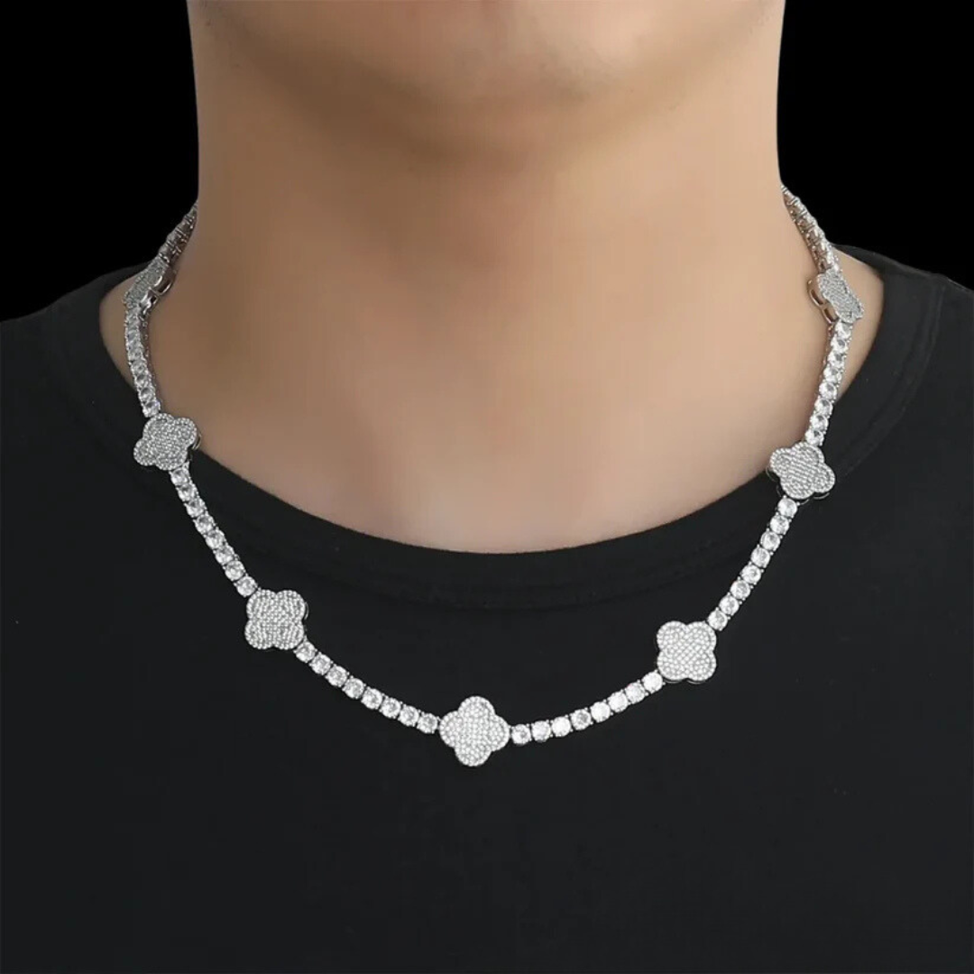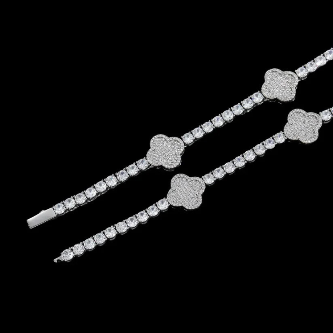 שרשרת טניס תלתן משובץ יוקרתי עם אבני זירקון נוצצים