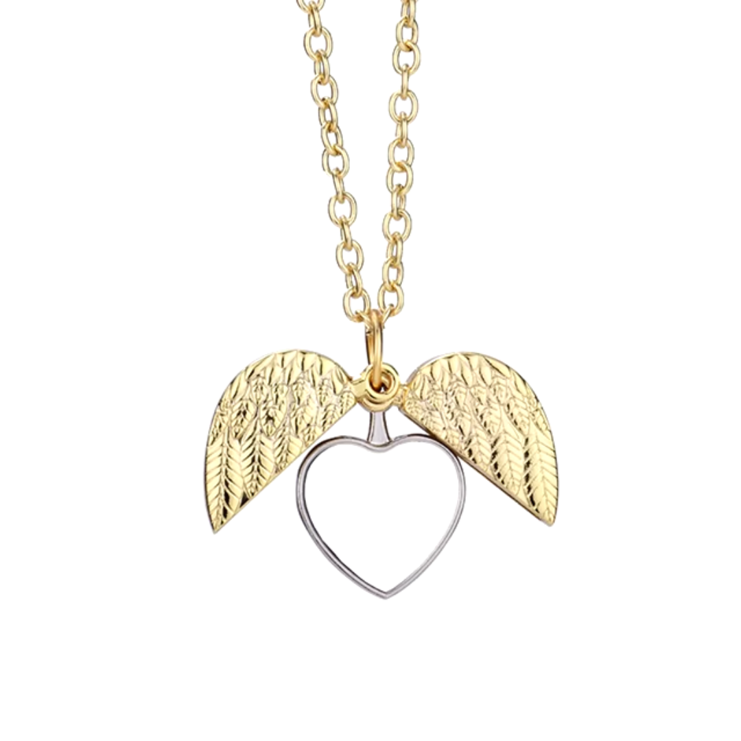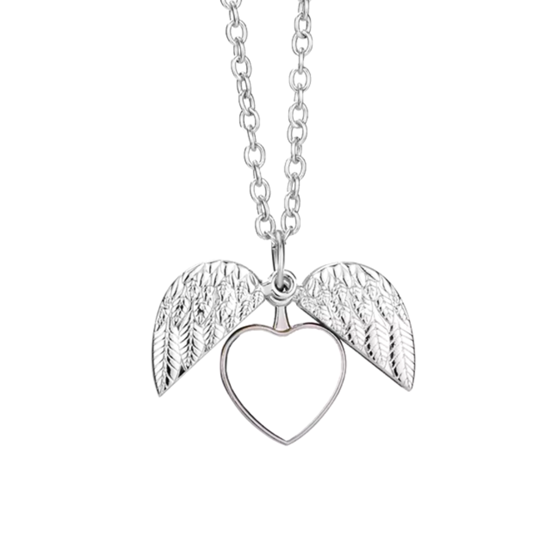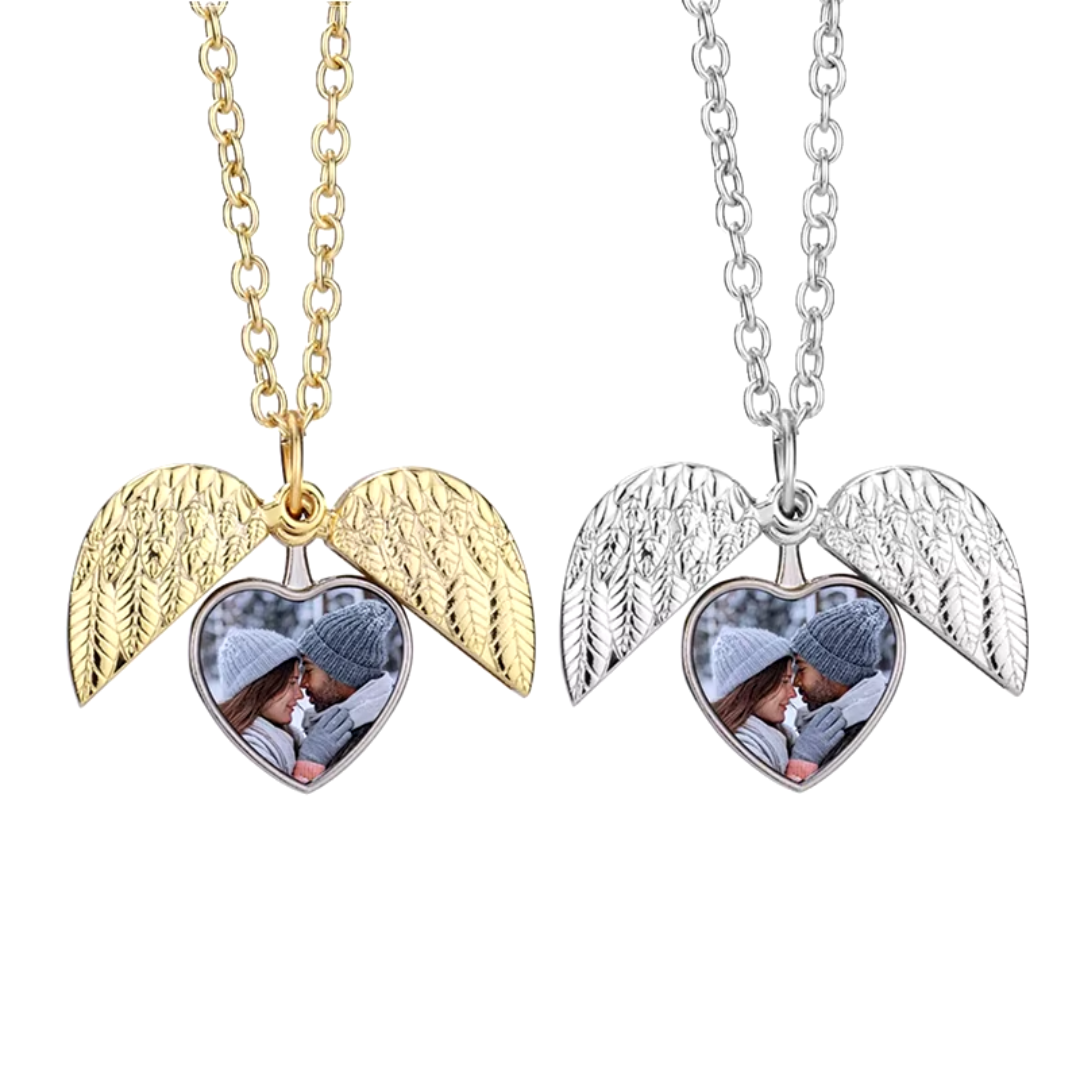 תליון זוגי לב עם כנפי מלאך ותמונה בהתאמה אישית